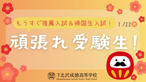 本校の推薦入試・帰国生入試の出願期間は明日1月15日(木)から1月17日(土)です。
