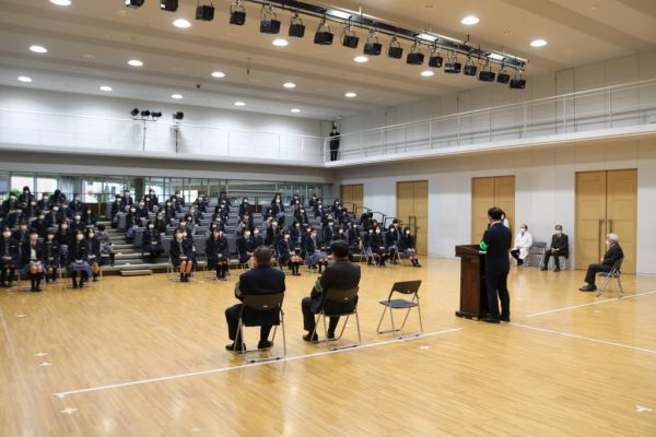 警視庁北沢警察署の方にご来校いただき、身の回りの安全や高校生を狙った犯罪についてお話しいただきました。