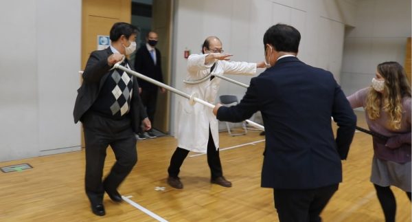 教職員には刺股(さすまた)の使い方についてご指導いただきました。