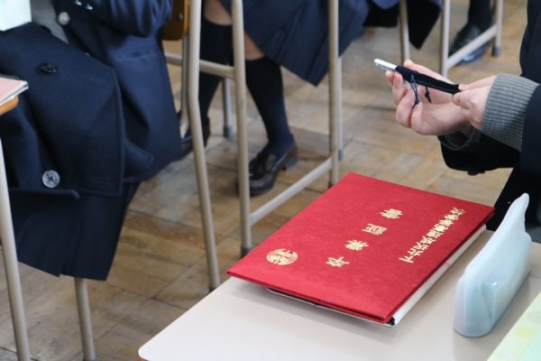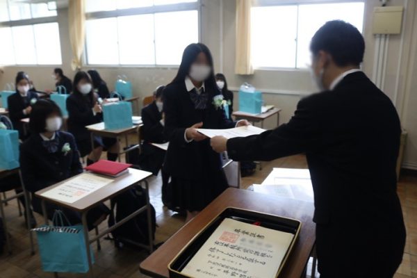 担任から卒業証書を渡されます。