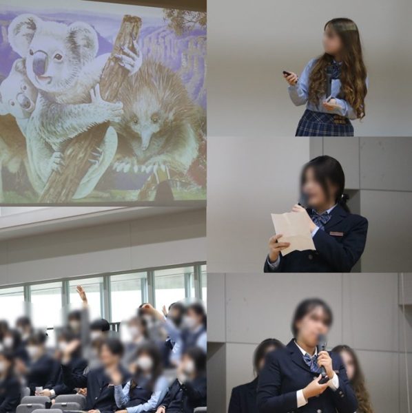 オーストラリア・タイ・スウェーデンからの留学生3名が、出身国について、クイズを取り入れたプレゼンテーションをしました。