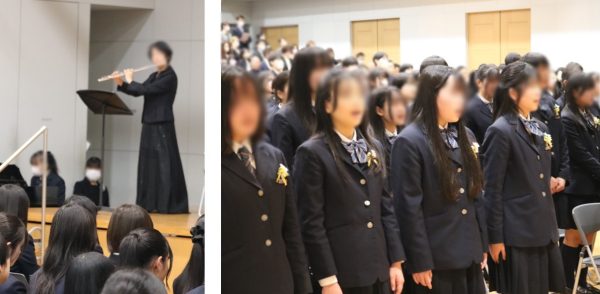 フルートによる「仰げば尊し」、そして校歌斉唱。