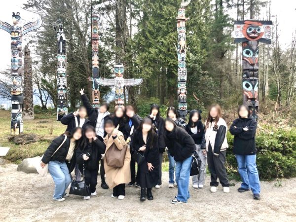 授業で勉強したカナダ先住民の伝統的な彫刻であるトーテムポールを実際にみることができました。