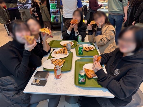 次にショッピングモールに立ち寄り、カナダならではの大きなピザを味わいました。