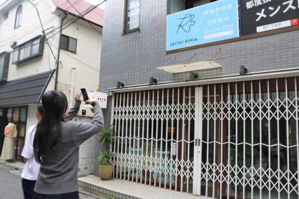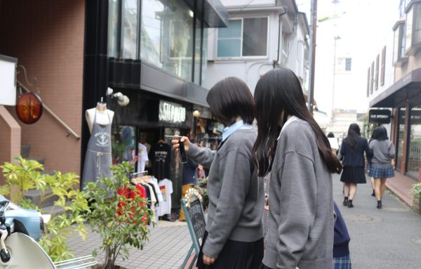 この日の授業では、写真を自分たちで撮影し、動画を作成する素材探しのため、本校周辺の下北沢の街の散策をしました。