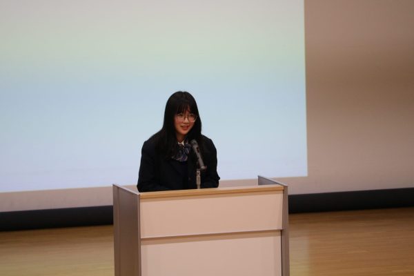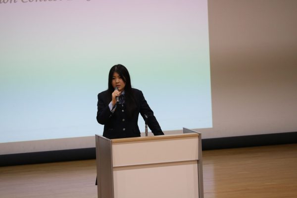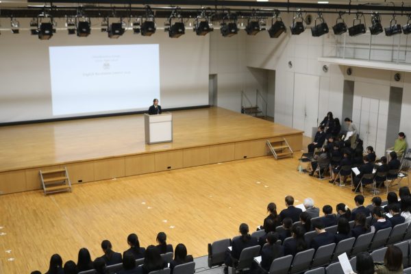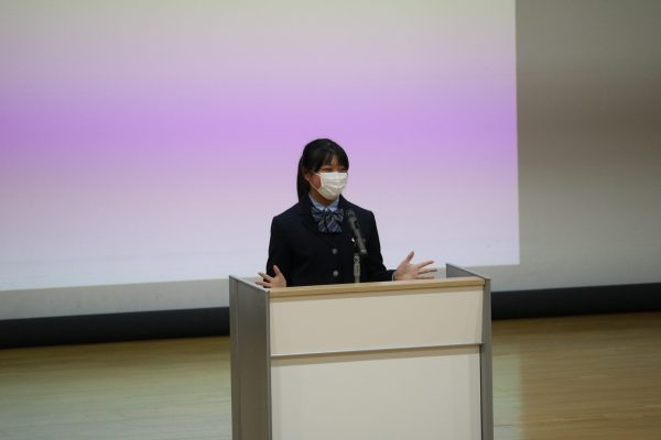 1年生代表者と2年生GLコースの生徒たちが登壇する「スピーチコンテスト」を開催いたしました。