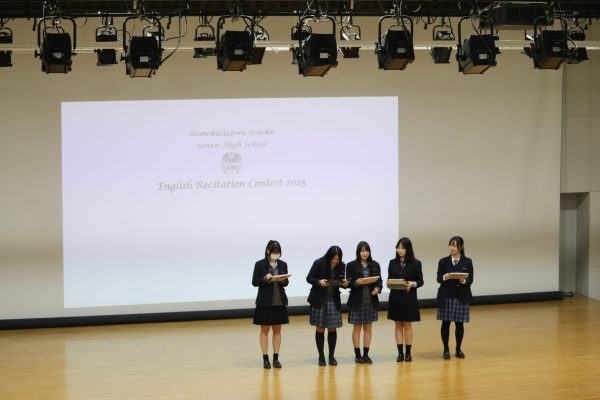 はじめに、Recitations(朗読)として1年生は2013年にMalala Yousafzaiさんが国連にて教育の重要性を訴えた演説文を、2年生はEmma Watsonさんが2014年に同じく国連にてジェンダー平等を訴えた演説文(原文)を暗記した上で、心を込めてスピーチしました。
