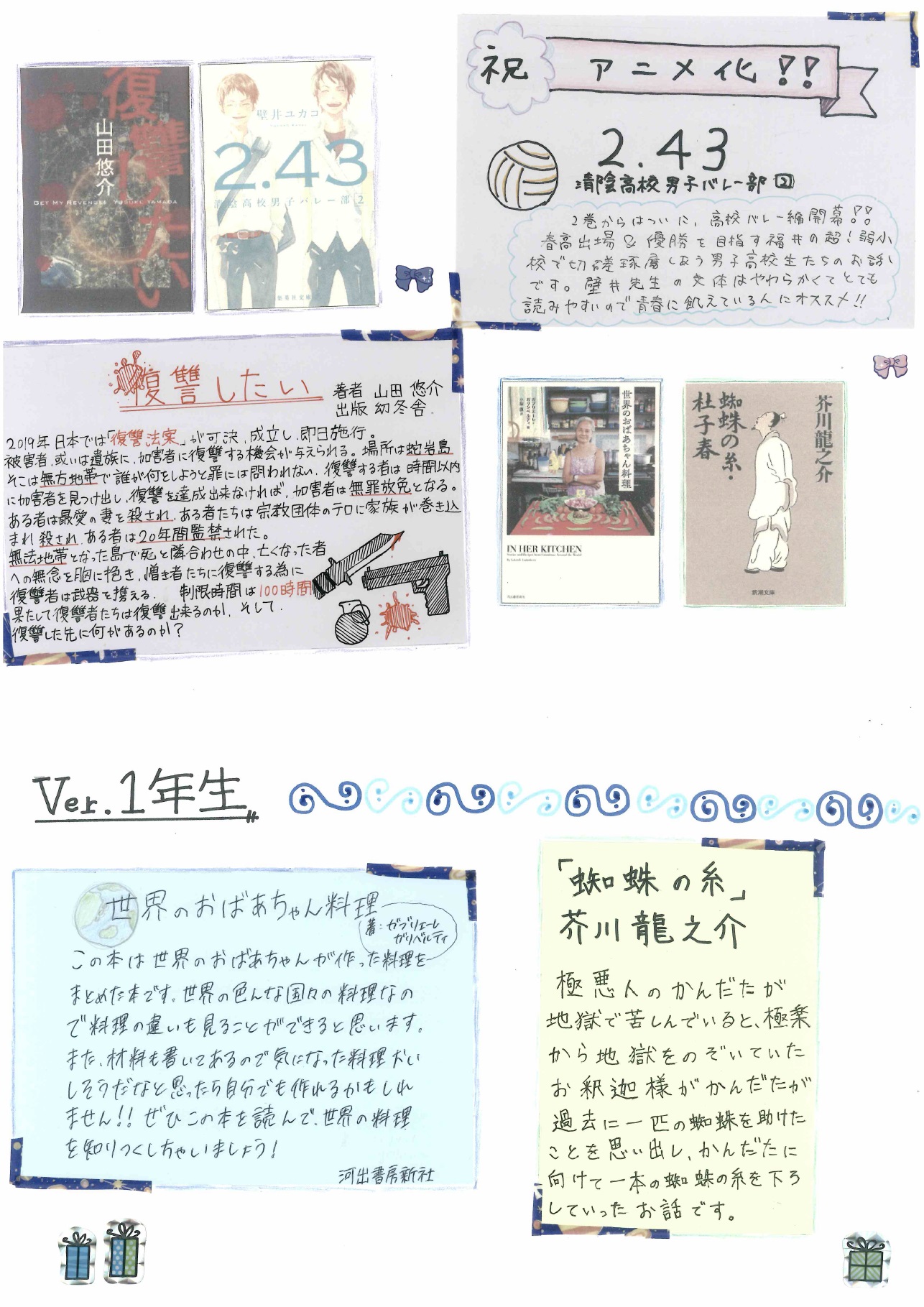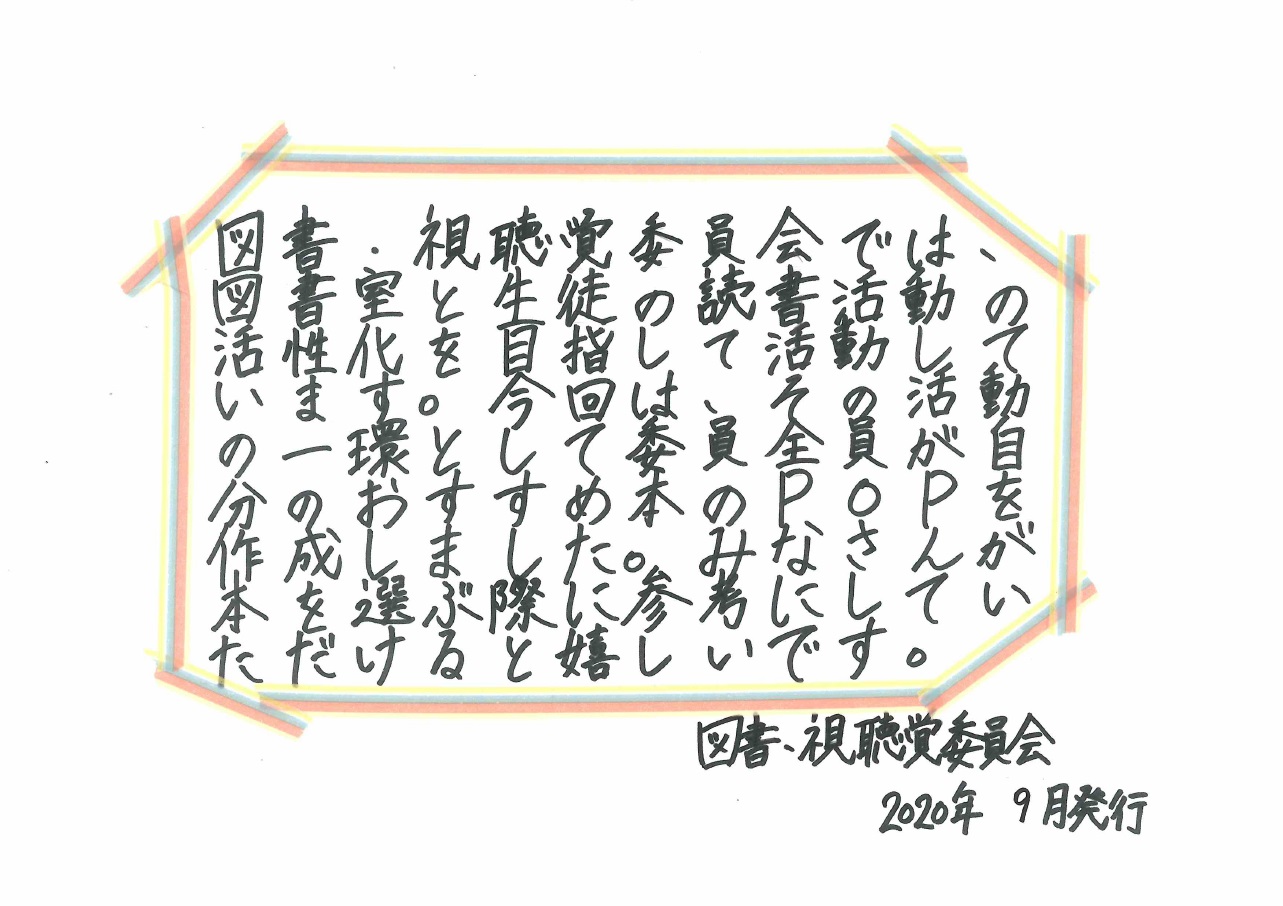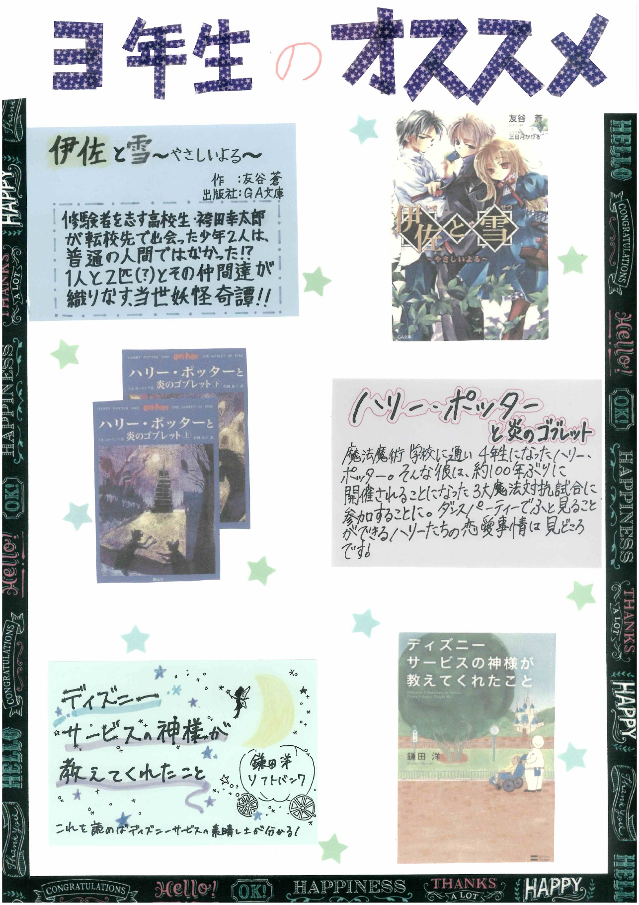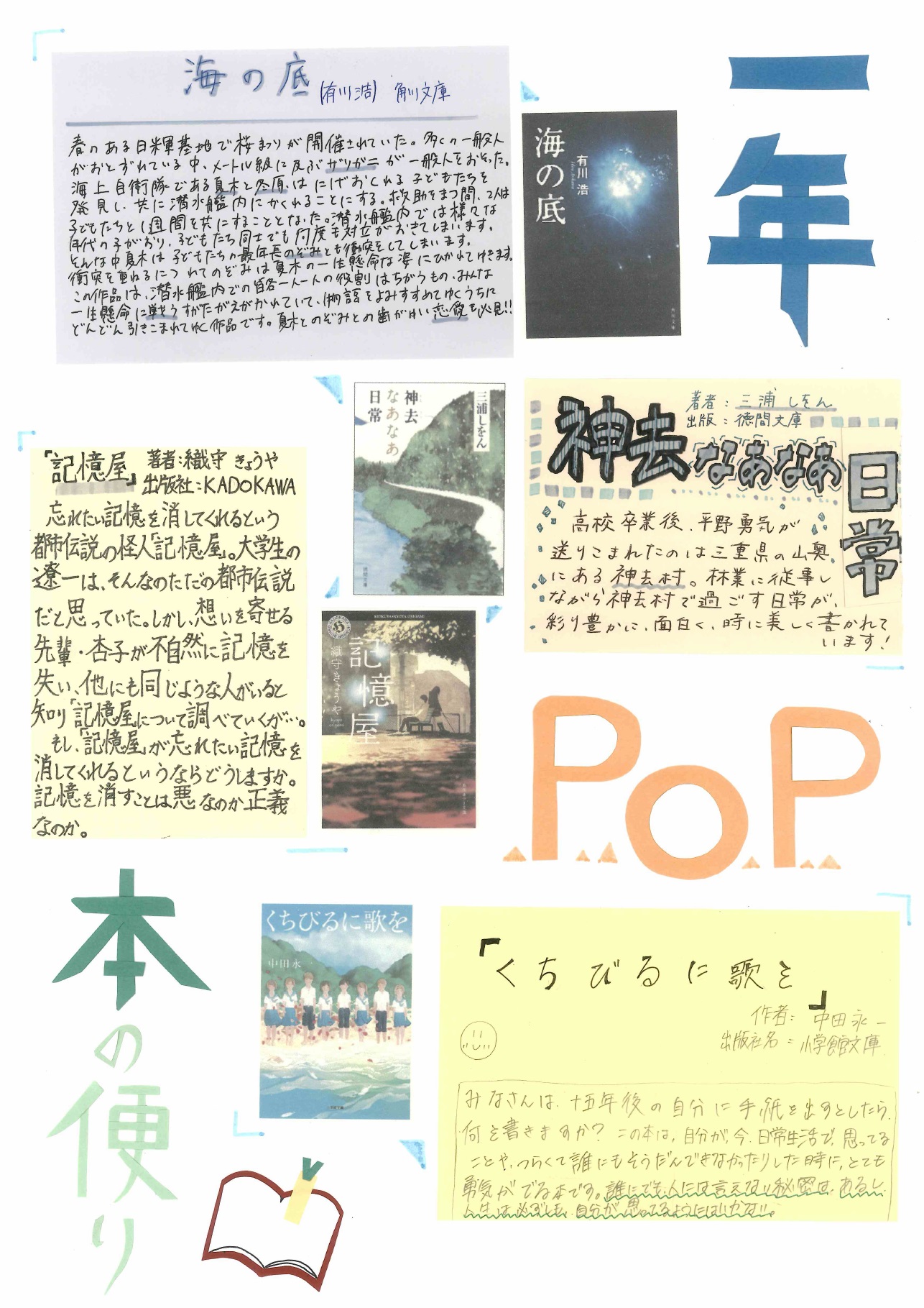 図書・視聴覚委員会のメンバーが、おすすめ本のPOPを作成しました。