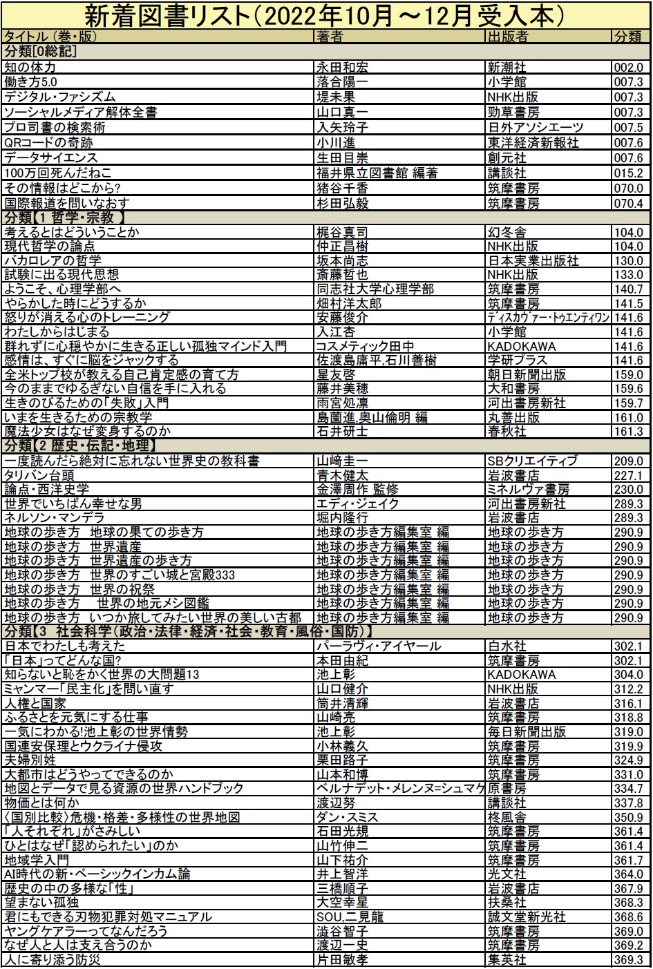 2022年10月/11月/12月の新着案内