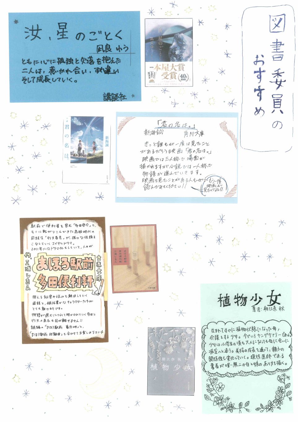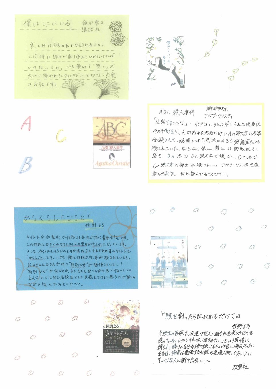図書・視聴覚委員が作成した「おすすめ本POP」を掲載しています。